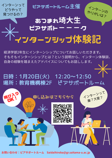 【1月20日(火)】「あつまれ埼大生ピアサポト---ク」開催のご案内